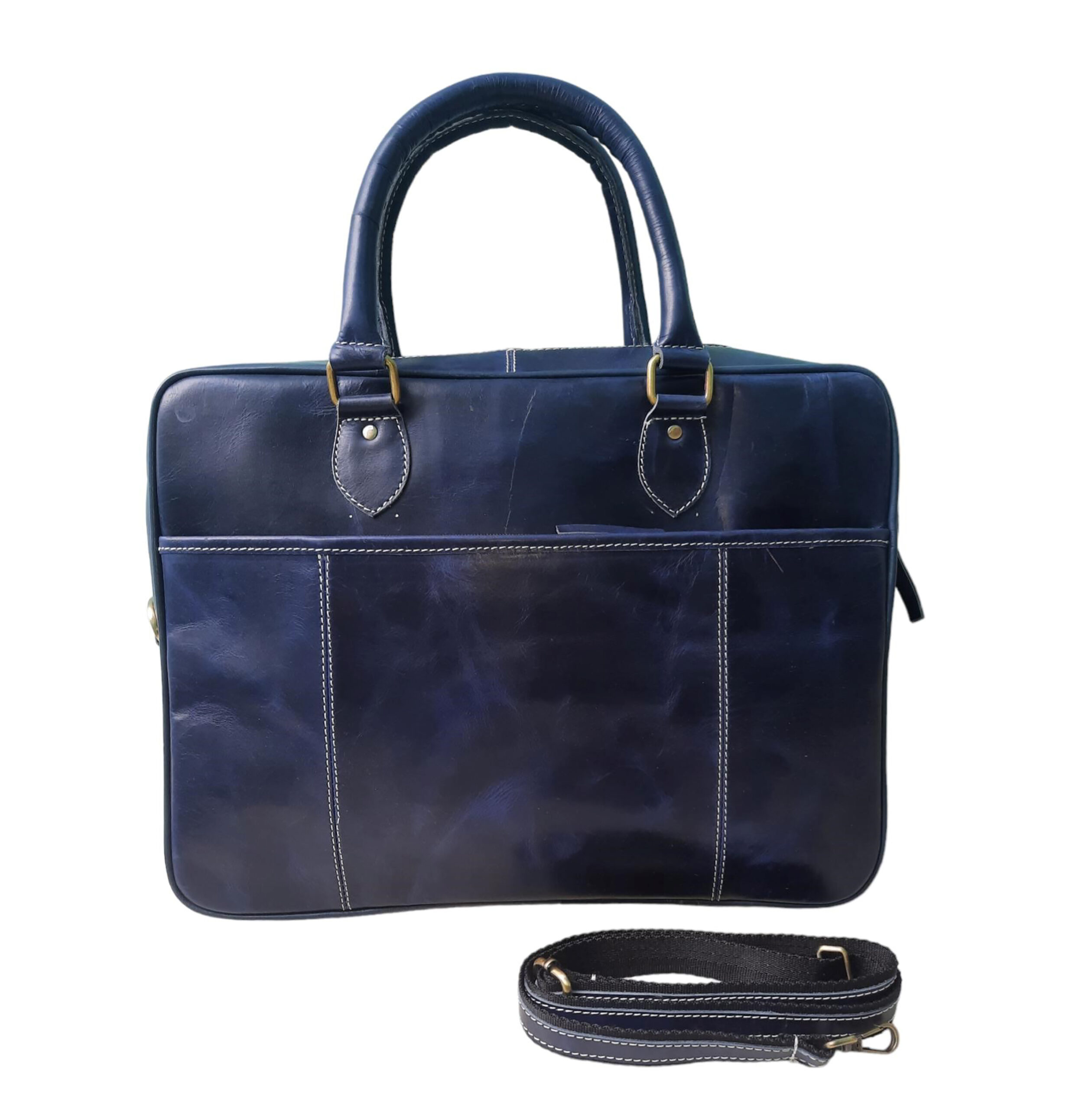 Blue Crunch Leather Laptop Bag